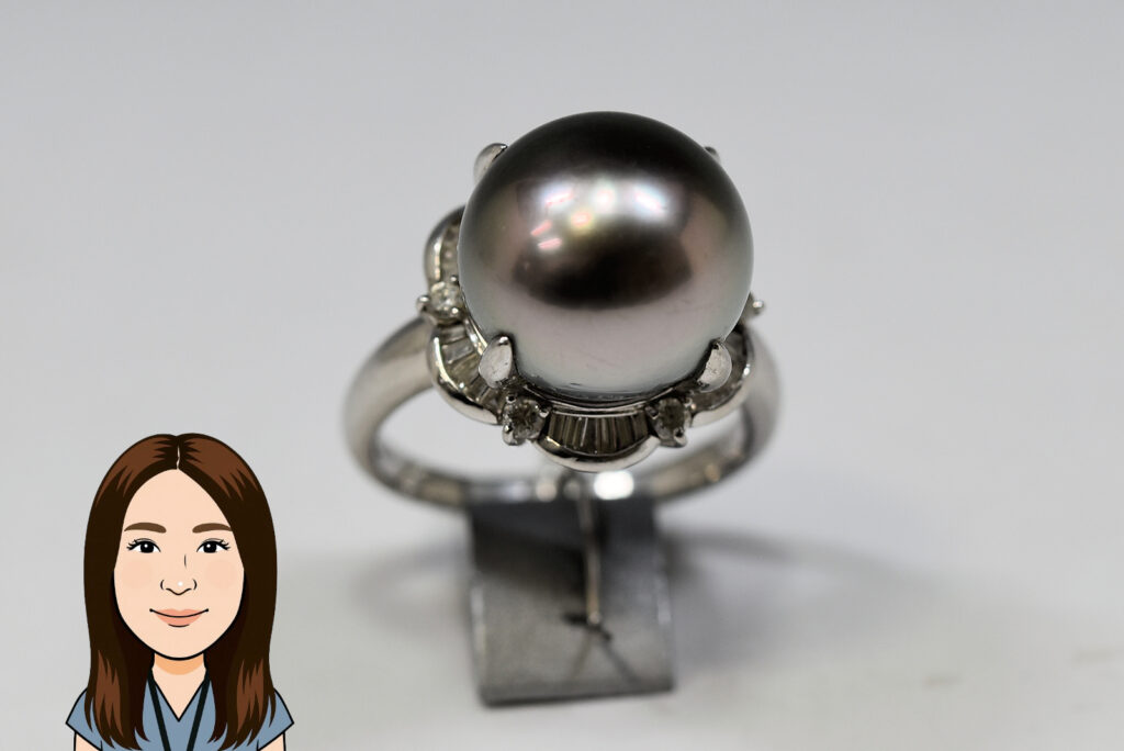 プラチナ枠にシロチョウパールとダイヤモンドがセットされた指輪を買取させていただきました。