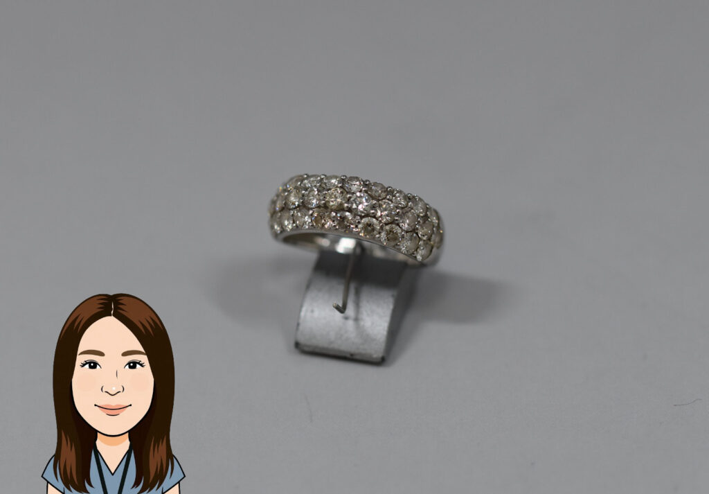 Pt850/900枠8.3gにダイヤモンドが0.962ctと0.64ctセットされたネックレスをお持ちいただきました。比較的綺麗なダイヤモンドでシンプルながら可愛らしいデザインということもあり85,000円でお買取りいたしました。