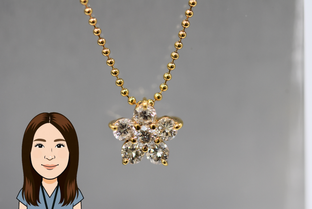「昔みたいにパーティとかがないから、着けて行く所がなくて最近は全然着けてないんですけど、手放してしまうともう同じ品物は買えないなと思って、残しておきたいんです。」とのことでした。